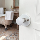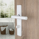 2 poignées universelles Dualfit sur plaque ronde EDISON verrou condamnation, Acier blanc mat bi-entraxe 165-195