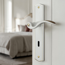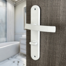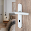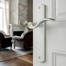 Poignée de porte intérieure design en laiton blanc et poli sur plaque Clé L entraxe 195 mm, EVITA