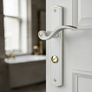 Poignée de porte intérieure design en laiton blanc et poli sur plaque Conda/Déconda entraxe 195 mm, EVITA