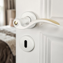 2 poignées de porte IBIZA verrou condamnation, Aluminium blanc mat entraxe 195 mm, design texturé rotation 360