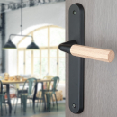 2 poignées de porte OCTO sans trou, Acier béquille en bois FSC entraxe 195 mm