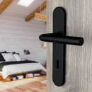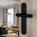 2 poignées universelles Dualfit sur plaque ronde EDISON entrée de clé, Acier noir mat bi-entraxe 165-195