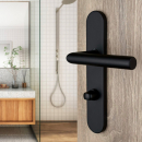 2 poignées universelles Dualfit sur plaque ronde EDISON verrou condamnation, Acier noir mat bi-entraxe 165-195