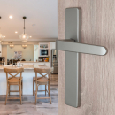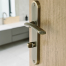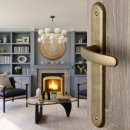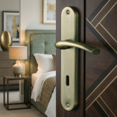 Poignée de porte intérieure design en métal finition aspect laiton brossé mat sur plaque fonction clé L entraxe 195 mm, ALBERTVILLE
