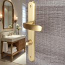 Poignée de porte intérieure design en métal finition aspect laiton brossé mat sur plaque fonction condamnation-décondamnation entraxe 195 mm, ALBERTVILLE