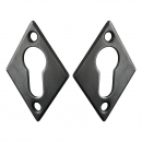 2 rosaces de poignée de porte losanges Ellix trou de cylindre, Fer aspect patiné