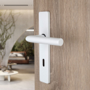 2 poignées universelles Dualfit sur plaque ronde EDISON entrée de clé, Acier blanc mat bi-entraxe 165-195