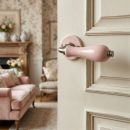 Poignée de porte intérieure sur rosace ronde en porcelaine rose bec de cane, LIZON