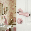 Poignée de porte intérieure sur rosace ronde en porcelaine rose avec rosaces de porte Clé L, LIZON