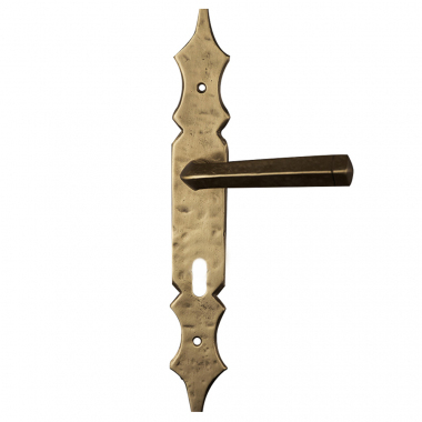 Accueil > 1/2 poignée de porte en laiton bronze / or sur plaque Clé L entraxe 195 mm, FEODAL