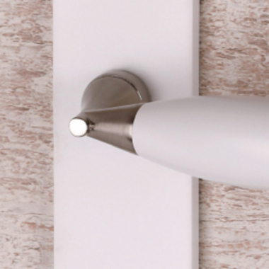 Poignée de porte intérieure design en porcelaine blanche et zamak Nickel mat sur plaque BdC entraxe 195 mm, ATHENA