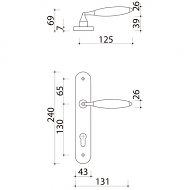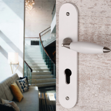 Accueil > 2 poignées de porte ATHENA CYL, Bois blanc entraxe 195 mm