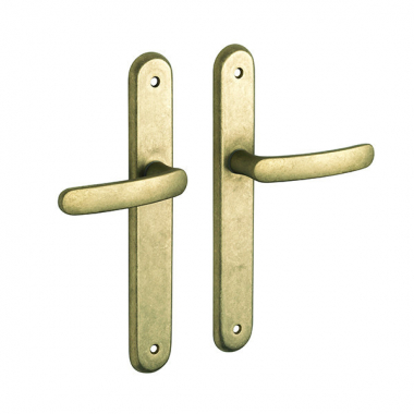 2 poignées de porte VINTAGE sans trou, Laiton brut laqué mat entraxe 195 mm