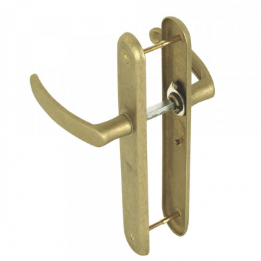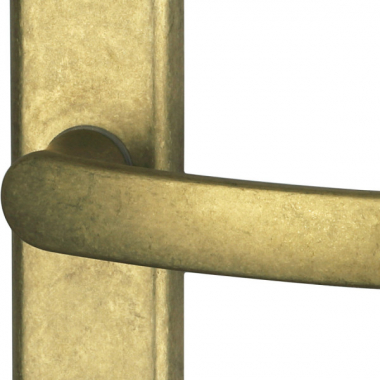 2 poignées de porte VINTAGE entrée de clé, Laiton brut laqué mat entraxe 195 mm