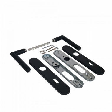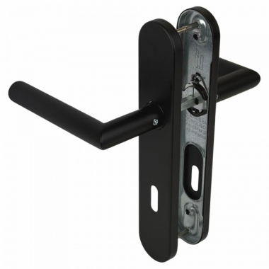 2 poignées universelles DUALFIT sur plaque ronde CHRISTIE verrou condamnation, Acier noir mat bi-entraxe 165-195