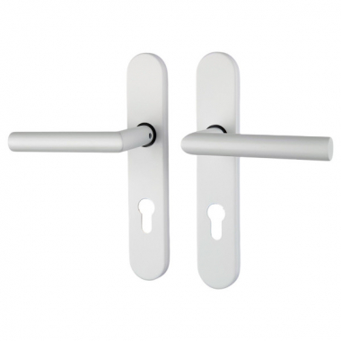 2 poignées universelles Dualfit sur plaque ronde EDISON trou de cylindre, Acier blanc mat bi-entraxe 165-195