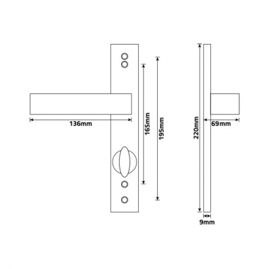 2 poignées universelles DUALFIT sur plaque ronde CHRISTIE verrou condamnation, Acier noir mat bi-entraxe 165-195