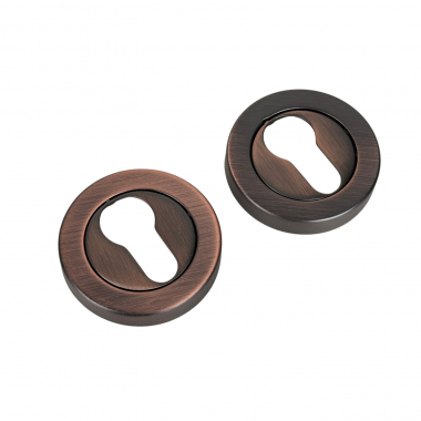 Paire de rosaces de fonction modèle ISOLA, à visser, finition Cuivre, fonction Clé I pour serrure de porte d'entrée ou de bureau.