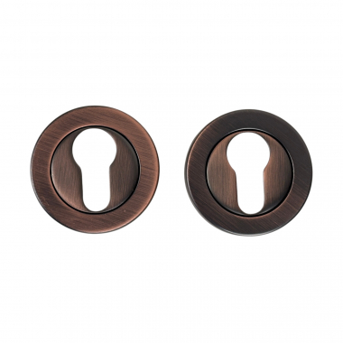 2 rosaces de poignée de porte rondes ISOLA trou de cylindre, Zamak aspect cuivre