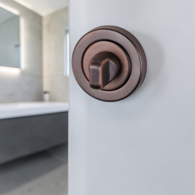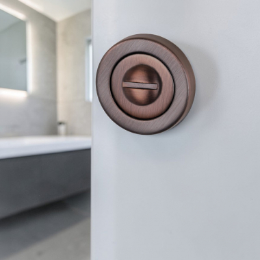 2 rosaces de poignée de porte rondes ISOLA verrou condamnation, Zamak aspect cuivre