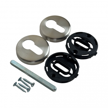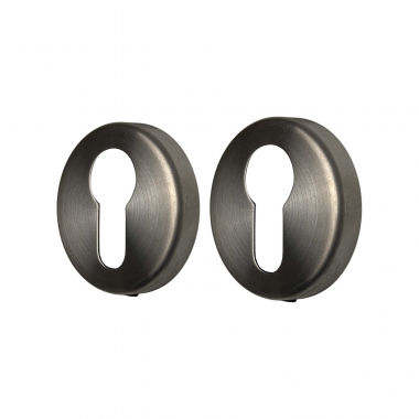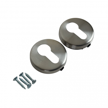 2 rosaces de poignée de porte rondes lisse AXIA trou de cylindre, Inox gris