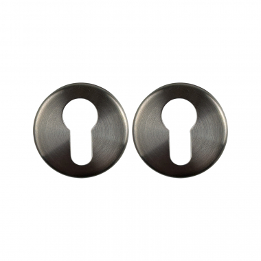 2 rosaces de poignée de porte rondes lisse AXIA entrée de clé, Inox gris
