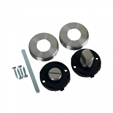 Accueil > 2 rosaces de poignée de porte rondes lisse AXIA verrou condamnation, Inox gris