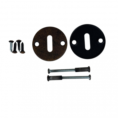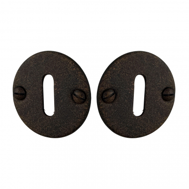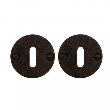 Paire de rosaces modèle SIENA en Acier aspect fer finition patiné avec trou de serrure.