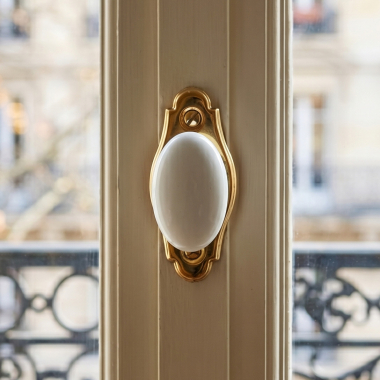 Bouton double de porte intérieure en porcelaine blanche base laiton poli, OLIVE