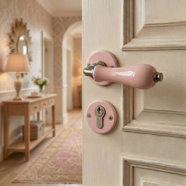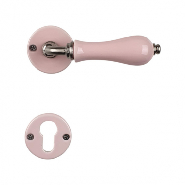 Poignée de porte extérieure sur rosace ronde en porcelaine rose avec rosaces de porte Cylindre, LIZON