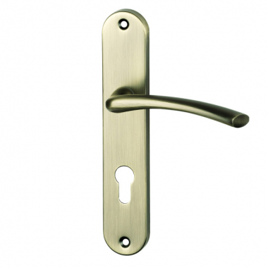 Poignée de porte intérieure design en métal finition aspect laiton brossé mat sur plaque fonction clé I entraxe 195 mm, ALBERTVILLE