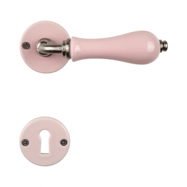 Poignée de porte intérieure sur rosace ronde en porcelaine rose avec rosaces de porte Clé L, LIZON