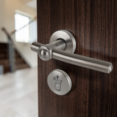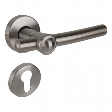 Poignée de porte sur rosace ronde Ø50mm en inox 304 mat avec rosaces de porte Clé I, GLOBO