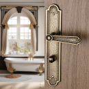 2 poignées de porte VINTAGE verrou condamnation, Laiton doré satiné entraxe 195 mm