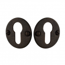 Paire de rosaces modèle SIENA en Acier aspect fer finition patiné avec trou de serrure.