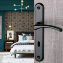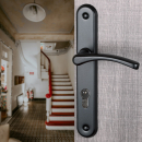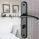 Poignée de porte d'entrée en zamak noir mat sur plaque clé L entraxe 195 mm, REGLISSE