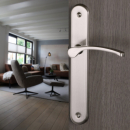 Poignée de porte intérieure en zamak nickel mat sur plaque BdC entraxe 195 mm, LILOU