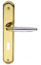 Poignée de porte d'entrée design en laiton poli et chromé brillant sur plaque Clé L entraxe 195 mm, ROBIN